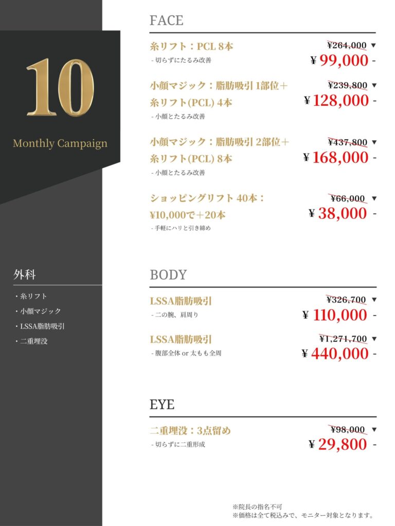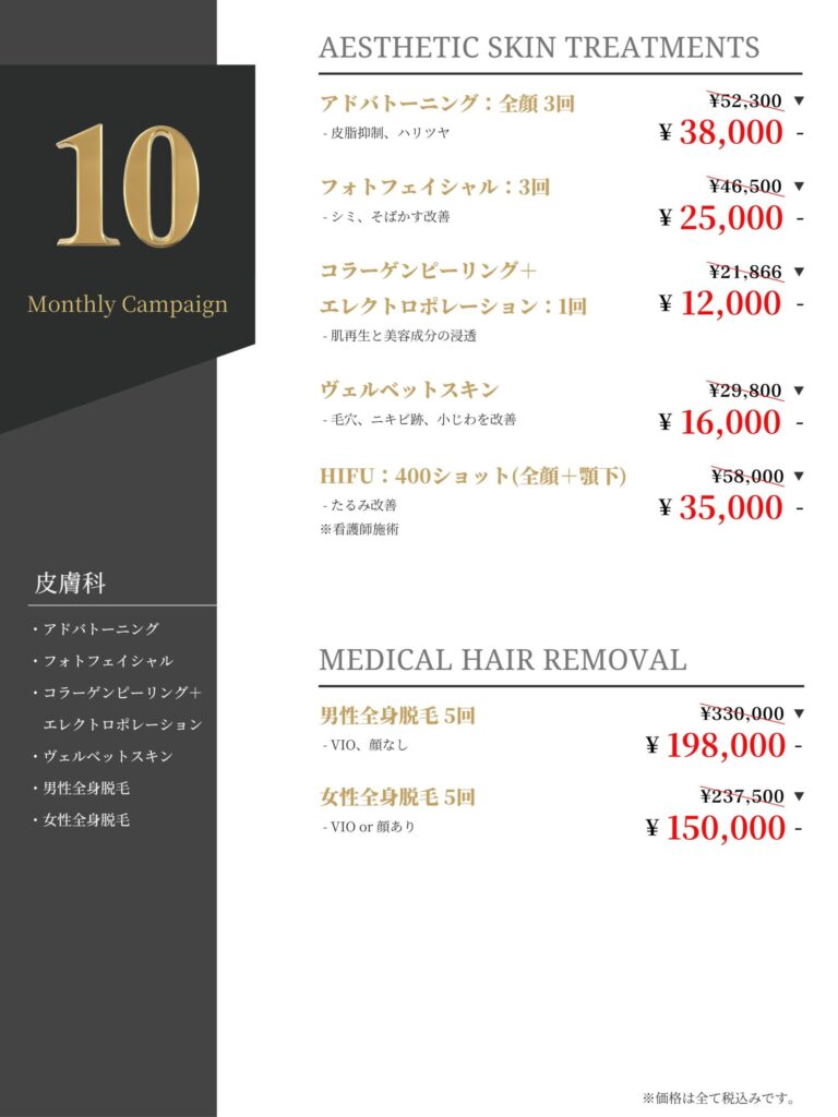 2025/09/30 キャンペーン マンスリーキャンペーン 10/1(水) – 10/31(金) 10月キャンペーン キャンペーン詳細 施術 画像参照 期間 10/1(水)-10/31(金) 費用 画像参照 記事をシェアする リンクをコピー リンクをコピーしました 前の記事 一覧へ戻る 次の記事