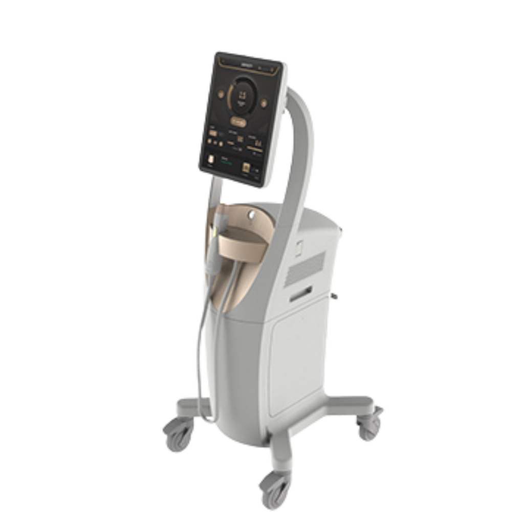 高周波(RF)エネルギーを皮膚の深部に熱を届け、肌の引き締めとリフトアップを促進します。