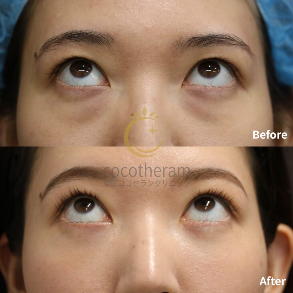 たるみとクマの両方を同時に改善し、全体的に明るい印象を与えます。
