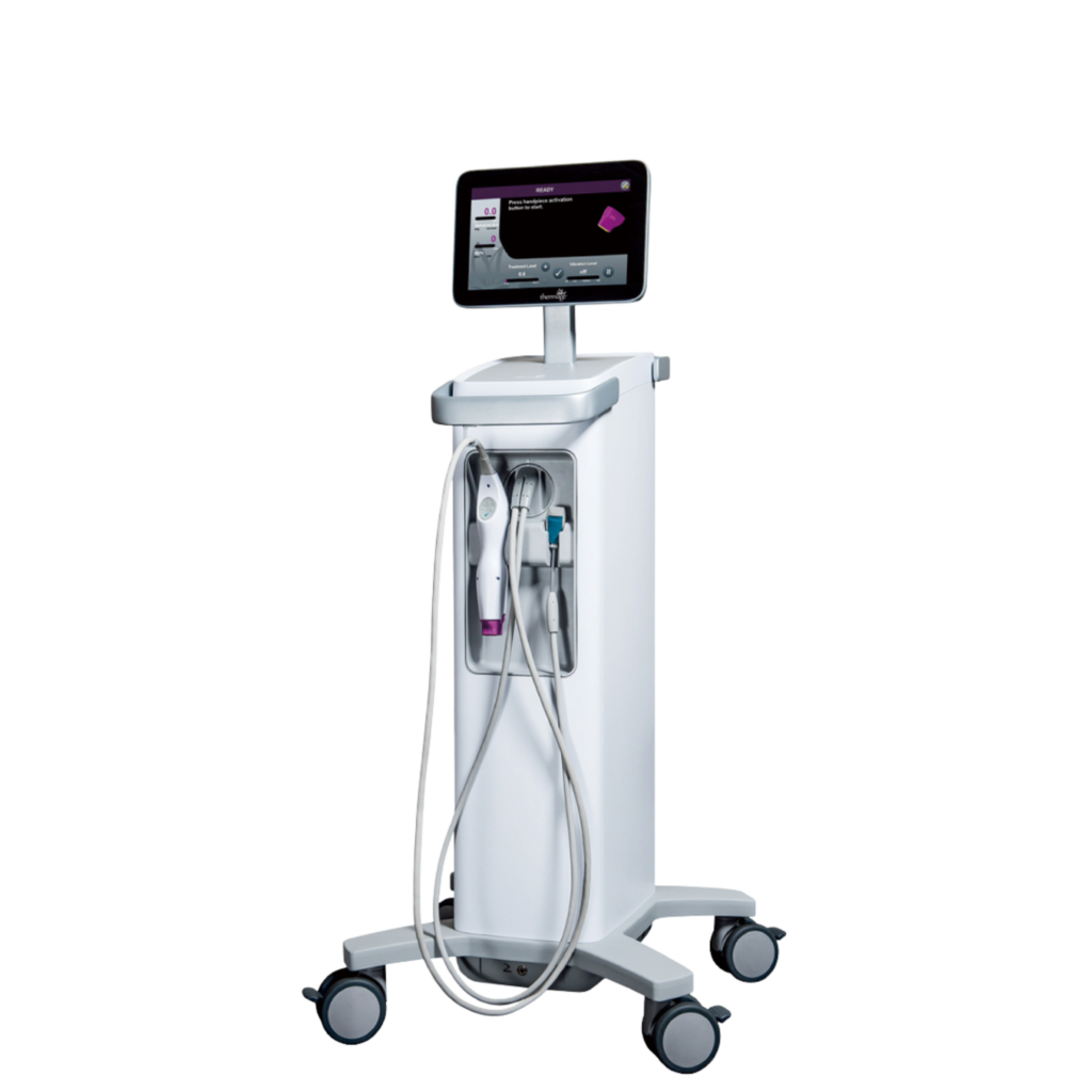 A. 従来よりも少ない熱感で加熱効率が高まるため治療効果が向上しました。1shotごとに電気の流れ方を検出してからの照射ができるようになり、引き締め効果もアップしました。